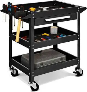 Costway Three Tray Rolling Tool Cart Mechanic Cabinet Storage ToolBox Organizer w/Drawer