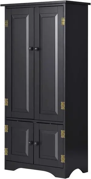 Costway Accent Storage Cabinet Adjustable Shelves Antique 2 Door Floor Cabinet Black
