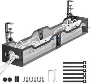 Under Desk Cable Management Tray Black, Cable Management Under Desk No Drill, 25'' Cable Tray with Clamp for Wire Management, Cord Organizer for Office, Home - No Damage to Table