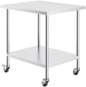 VEVOR Stainless Steel Work Table 24 x 24 x 38 Inch, 700 LBS Load Capacity with 4 Wheels, 3 Adjustable Height Levels, Heavy Duty Food Prep Worktable for Commercial Kitchen Restaurant, Silver
