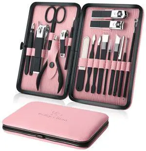 Manicure Set Professional Nail Clippers Kit Pedicure Care Tools- Stainless Steel Women Grooming Kit 18Pcs for Travel or Home (Pink)
