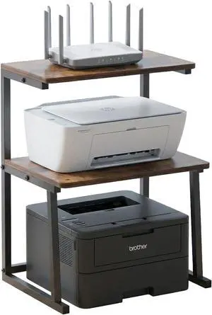 YMYNY Desktop Printer Stand, 3 Tiers Desk Organizer with Adjustable Storage Shelves, Multi-Purpose Printer Shelf for Home Office, Fax Machine, Scanner, Files, Books, Rustic Brown, UHPT001H