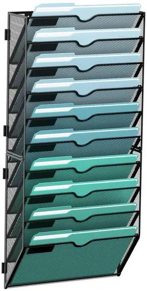 10-Tier Wall File Organizer, Hanging Wall Files for Papers, Folders, Magazines, Clipboard, Wall Organizer for Office Home School Classroom, Black