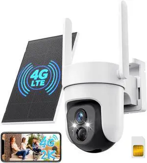 GNCC 4G LTE Cellular Security Camera Outdoor, No WiFi Needed Solar Security Camera with SIM Card, 2K Color Night Vision, 360° Pan Tilt, Motion Detection, Remote Farm/Ranch/Construction Site Camera