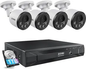 ZOSI 5MP 8CH Wired PoE Security Camera System with Audio, 4pcs Outdoor PoE Cameras, Night Vision, H.265+ 8 Channel 5MP 3K Home NVR with 1TB HDD for 24/7 Recording, No ISED is Provided