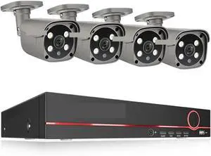 8CH 5MP 8MP Security Camera System 4K HD POE IP Camera Kit Two Way Audio Face Detect Metal Outdoor Video Surveillance(None,8CH 4Pcs 8MP Camera)