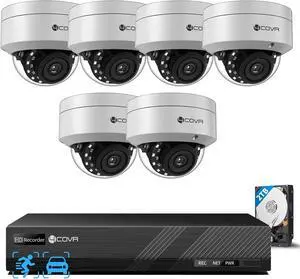 4COVR PoE Security Camera System, 6X 8MP IK10 Vandal-Proof Commercial Wired PoE IP Dome Camera IP67, AI Human Vehicle Detection, 8 Channel 4K NVR 2TB HDD, 24/7 Home Surveillance Outdoor, LY54AB8M0806