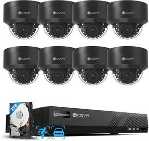 4COVR PoE Security Camera System, 8X 5MP IK10 Vandal-Proof IP67 Dome IP Camera with Audio, 8CH 4K NVR 2TB HDD, AI Human Vehicle Detection & Night Vision, 24/7 Home Recording, LY54AX5M0808
