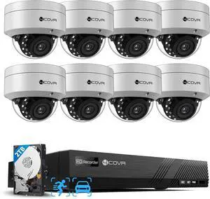4COVR 4K PoE Security Camera System, 8X 8MP IK10 Vandal-Proof IP67 Dome PoE IP Camera, 8CH NVR 2TB HDD, AI Human Vehicle Detection & IR Night Vision, 24/7 Home Outdoor Recording, LY54AB8M0808
