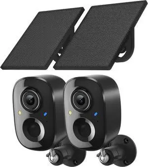 Solar Security Cameras Wireless Outdoor,2K Solar Camera Wireless for Home, 2.4GHz WiFi,Color Night Vision,Two-Way Talk,IP66 Waterproof,Two Spotlights,Cloud/SD(2 Packs,White)