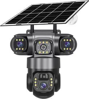 V380 Pro 15MP 6K 10X Zoom Triple Lens WiFi Solar Outdoor Three Screen PIR Motion Detection Security CCTV Camera(WiFi Cam Add 64G)