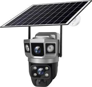 Dual Lens Three Screens WiFi Solar Camera 12MP 10X Zoom CCTV Outdoor Automatic Tracking Humanoid Detection Support PTZ IP66 Cam(WiFi Cam No Card)