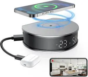LIZVIE Wireless Phone Charger Hidden Camera Clock, 1080P Night Vision/Motion Detection Alarm/App Control/SD Storage/Nanny Camera for Home Security Indoor.