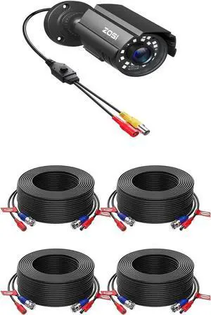 ZOSI 1080P Hybrid 4-in-1 Security Camera with 4-Pack 100ft BNC Video Power Cables, Indoor Outdoor Bullet Cam with Night Vision & IP66 Waterproof Metal Housing,.