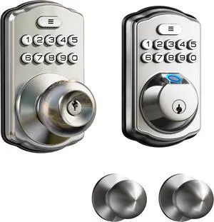 Veise Fingerprint Door Lock with 2 Konbs and Veise Keypad Door Knob Lock, Satin Nickel