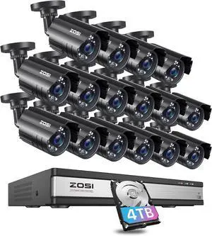 ZOSI 3K Lite 16CH Security Camera System Outdoor with 4TB HDD,AI Human/Vehicle Detection,H.265+ 16Channel 1080P CCTV DVR with 16PCS 1920TVL Surveillance Cameras,Night Vision,for 24/7 Recording