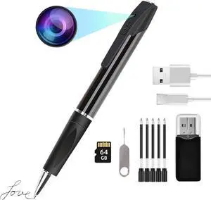 Hidden Camera, 1080P FHD Spy Pen Camera with 64GB TF Card, Cam Pen with Video or Picture Taking, Loop Mode, Long Battery Life, Portable Body Cam for Business, Offices or Daily Use
