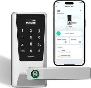 DESLOC WiFi Smart Lock D110 Plus, Built-in Wi-Fi No Hub Needed, Fingerprint Keyless Entry Front Door Lock, Touchscreen Keypad Deadbolt with Backlit, APP Control, Auto Lock, Anti-Peep PIN, BHMA Grade 3