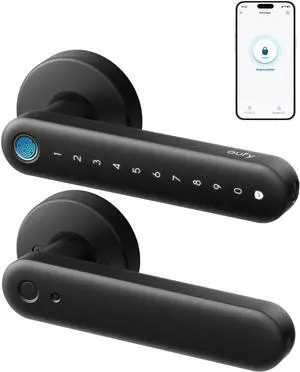 eufy Security Smart Lock FamiLock C32, Fingerprint Keyless Entry Door Lock with Handle for Interior Doors, Built-in Wi-Fi (2.4 GHz Only), App Control, Auto Lock, 4 AA Batteries, Alexa/Google