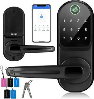 CATCHFACE Fingerprint Door Lock - TTLock Smart Keyless Entry Lock with Reversible Handle - Matte Black
