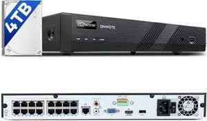 ONWOTE 12MP 16 Channel PoE NVR (Built-in 16 PoE Ports), 4TB HDD Included, Smart AcuSearch, Only Work with ONWOTE PoE IP Cameras, 16CH 6K 4K 8MP NVR Security Video Audio Recorder, 2 SATA Support 20TB