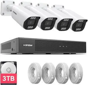 H.VIEW 4K 8MP 8CH POE NVR Security Camera System (16CH Expandable), 4 x 8MP PoE IP Bullet Cameras Outdoor Indoor, AI Human/Person/Face Detection, Two-Way Audio, 100ft IR Night Vision, 3TB HDD