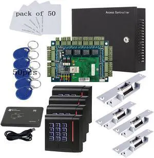 MENGQI-CONTROL RFID Keypad Access Control System Card or PIN Code Open 4 Doors Strike Lock Smart TCPIP Control Board Keypad Door Access 110-240V Power Supply Box