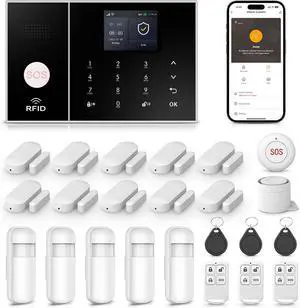 Home Security System with Camera, WiFi + GSM Home Alarm Kit with Phone App Alert, Door/Window Sensor, Remote Control for Apartments (13 Pieces)