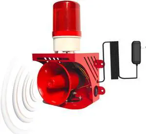 AC110V Industrial Siren Alarm Strobe Light-120dB Loud Horn&Red Beacon Warning Light,Waterproof Indoor/Outdoor Safety Alarm for Emergency,Factory,Office,Fires,Tornado,Intruders,Animal Deterrent