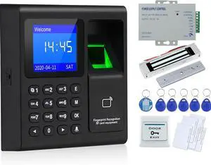 Full RFID Door Lock Access Control Fingerprint Keypad +180KG Electric Magnetic Lock+Power Aupply+Exit Button +Door Bell+5 Cards+ 5 keyfobs + Epoxy Tag