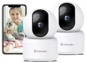 2K Solar Security Cameras Wireless Outdoor, 2 Pack 360° View Pan/Tilt WiFi Security Camera Outside with Color Night Vision,Easy to Install, PIR Alarm, 2-Way Audio