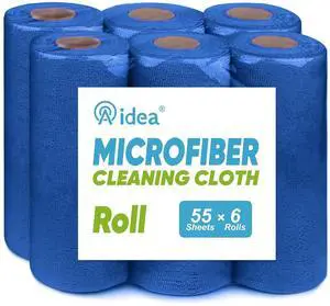 AIDEA Microfiber Cleaning Cloth 330 Sheets 6 Roll, Microfiber Towels for Cars, Shop Rags Washable, Cleaning Rags Reusable Paper Towels for Automotive, House, Cleaning Supplies 11×9" Dark Blue