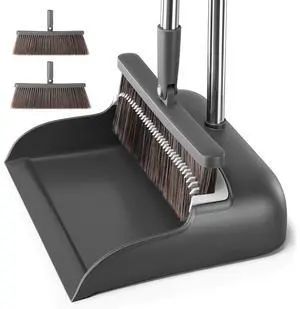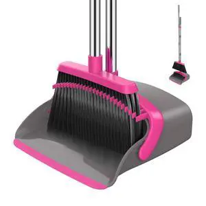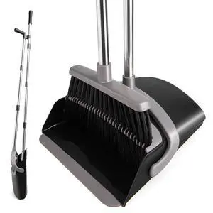Broom and Dustpan Set - 56" Long Adjustable Handle Broom with Upright Standing Dustpan Combo for Home,Kitchen, Shopping Mall and Factory Indoor&Outdoor Sweeping