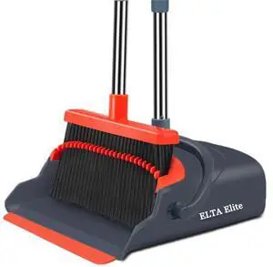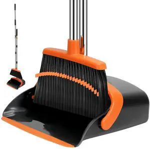 Long Handle Broom and Dustpan Set,Upright Dust Pan Combo for Home, Kitchen, Room, Office, Lobby Floor Use Without Bending