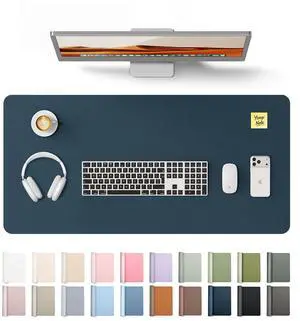 Leather Desk Protector, Office Mat, Large Mouse Mat, Non-Slip PU Leather Blotter, Laptop Pad, Waterproof Writing Pad for Office and Home (Dark Blue, 35.4" x 17")