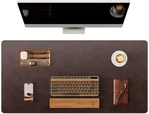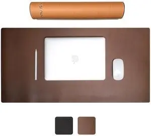 Rollable Bonded Leather Desk Mat, 36 x 17 Inch Desk Pad, Smooth Writing Surface, Desk Protector for Office and Workspace