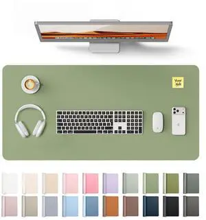 Leather Desk Protector, Office Mat, Large Mouse Mat, Non-Slip PU Leather Blotter, Laptop Desk Mat, Waterproof Writing Pad for Office and Home (Bamboo Green, 31.5" x 15.8")