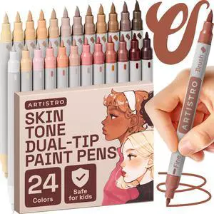 24 Skin Colors Acrylic Paint Markers - Paint Pens for Drawing, Brush + Fine Tips - For Fabric, Rock, Glass, Wood, Eggs - Art & Craft Supplies for Adults, Teens, Kids - Easter Basket Stuffers