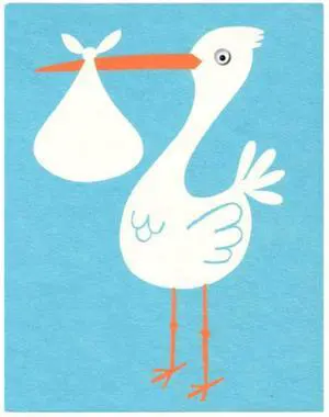 Lisa Jones Studio Lithograph Print Cards: Print Card / Stork (Blue)