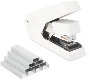 Office Heavy Duty Stapler, Flat Clinch, Effortless, 40 Sheet Capacity, 1000 Staples, No Jam, for Classroom, Office or Desk Use, White- Type: Heavy Duty Hole Punchers