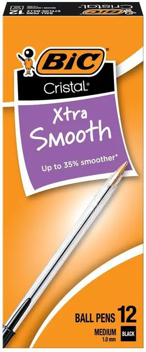 Cristal Xtra Smooth Black Ballpoint Pens, Medium Point (1.0mm), 12-Count Pack, Extra Smooth and Reliable Ballpoint Pens