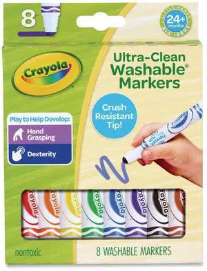 Toddler Friendly Ultra-Clean Washable Markers Broad Crush-Resistant Dot Tips Assorted Colors 8/Pack 811548