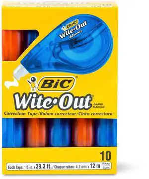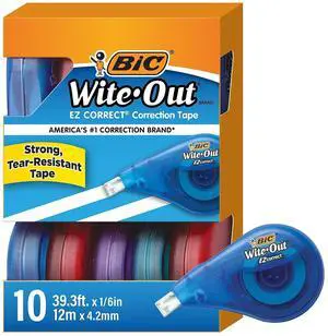 Wite-Out EZ Correct Tear-Resistant Correction Tape with 39.3 ft of Tape, 10-Count Pack in White
