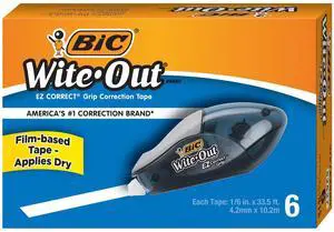 Out Brand EZ Correct Correction Tape, White, Fast, Clean & Easy To Use, Tear-Resistant Tape, 6-Count