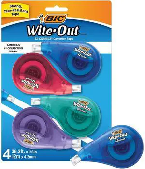 Brand EZ Correct Correction Tape, 39.3 feet, 4-Count Pack of White Correction Tape, Fast, Clean and Easy to Use Tear-Resistant Tape Office or School Supplies