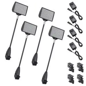 Features: Aluminum alloy construction; IP65 protected^^Bendable arms for angle adjustment^^Power: 9W; Luminous Flux: 1170 lm; Color Temp: 6000-6500K^^Clip-on, fit for most banner stands^^Easy & quick to install