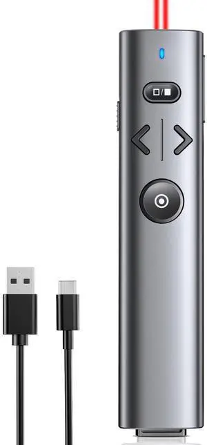 Features: Ergonomic, USB, 328 feet, AAA, false, Presenter remote for MS Word, Excel, PowerPoint, ACD See, iWork (Keynote & Numbers & Pages) Google Slide, Presentation clicker for Mac, Windows Linux, Android, Presentation remote for laptops, presentation electronic whiteboards, projectors