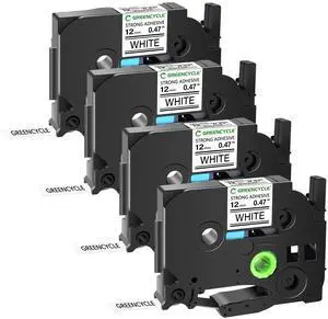 GREENCYCLE Extra Strength TZe-S231 12mm 0.47 Laminated White Tape Compatible for Brother P-Touch Black on White TZ-S231 TZeS231 1/2 inch TZe TZ Tape for Ptouch PT-D210 D220 H110 H100, 4 Pack