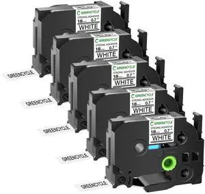 GREENCYCLE Extra Strength TZe-S241 18mm 0.7 Laminated White Tape Compatible for Brother P-Touch Black on White TZ-S241 TZeS241 3/4 inch TZe TZ Tape for Ptouch PTD410 PTD400 PTD610BT PTD600, 5 Pack