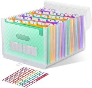 Accordion File Organizer with 26 Pockets & Label Stickers, Expanding File Folders Fit for A4 & Letter Size Paper, Multi-Functional Document Organizer for Home & Office File Management